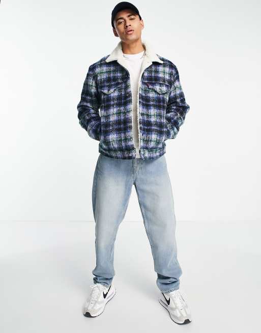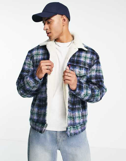 Levi S Sherpa Trucker Jacket In Green Check Asos